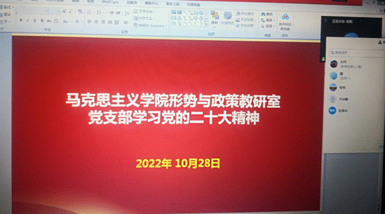 (通讯员 宋玮、赵普兵)10月28日下午,yl6809永利形势与政策教研室党支部在线上集体学习党的二十大精神并进行理论研讨,研讨会由支部书记宋玮主持。