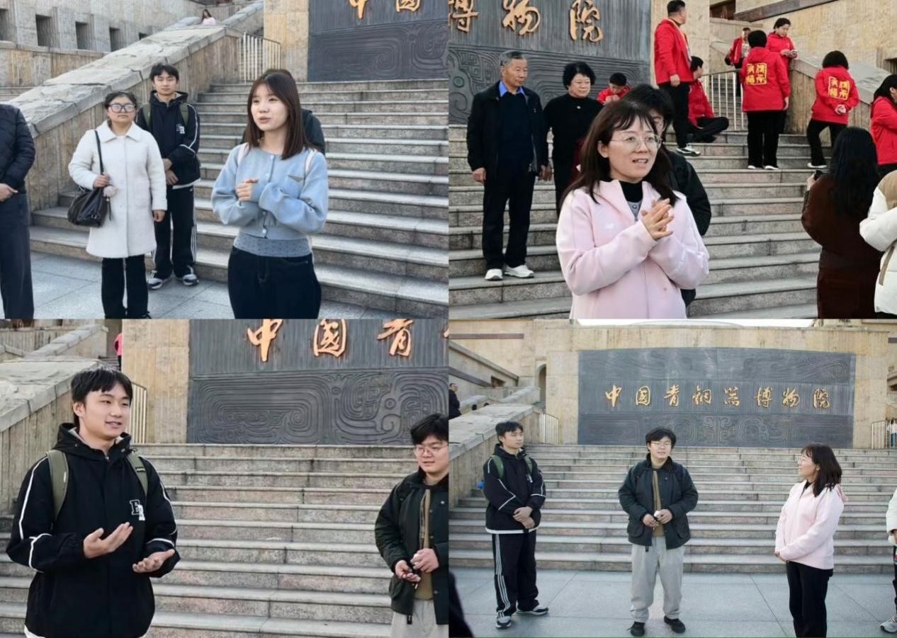 研学活动尾声,张丽珍老师邀请同学们畅谈参访收获,现场气氛热烈高涨。李家怡同学感慨科技与文化融合的强大力量,直言馆内的数字化展示、互动体验等科技手段,让原本晦涩难懂的文物变得生动鲜活,让千年文明更易被大众理解感知;杜暖钰同学谈到,近距离观赏青铜器的纹饰与铭文,让遥远的历史变得具体可触,深刻体会到历史并非遥不可及,而是与每个个体的文化基因紧密相连;赵嘉豪同学则表示,从一件件承载着历史记忆的青铜文物中,深切感受到了厚重的文化自信,此次研学是一次难得的实践机会,让理论学习有了更生动的载体,收获十分丰厚。