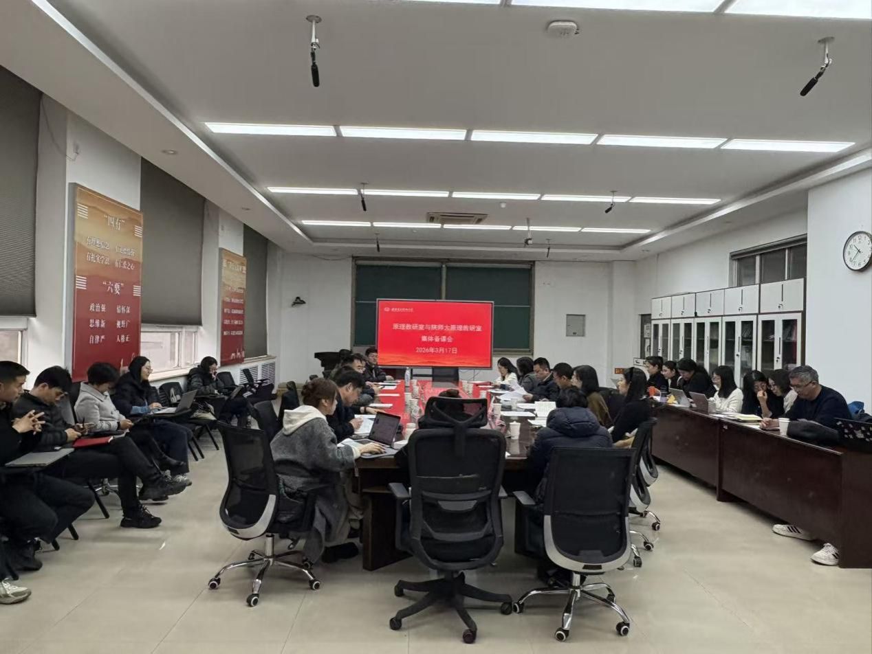 (通讯员 孙江可)为进一步提升学院思政课建设水平,探索大数据、人工智能等技术在“马克思主义基本原理”(以下简称“原理”)课程中的应用路径,推动教学内容与方法创新,2026年3月17日上午,我校原理教研室邀请陕师大原理教研室共同开展集体备课,会议由我校原理教研室党支部书记蒋冬双主持,陕师大原理教研室教师党支部书记张兵、原理教研室主任张鹏,以及郭瑞萍、成彬、解斯棋、张晓燕与我校原理教研室全体教师以及其他学院参训教师参加了此次活动。