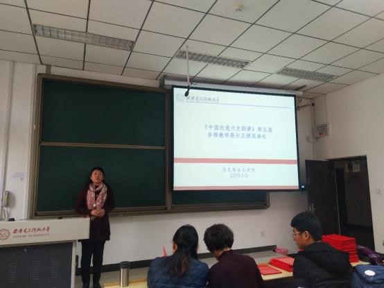 这是中国近现代史纲要教研室第五次组织该项活动。多维教学方式是近年来中国近现代史纲要教学团队在推动本科教改方面做出的探索和实践。在专题授课的基础上充分发动学生自主学习的兴趣,以问题为导向让学生积极参与到教学过程中,取得了良好的教学效果。参与本次教学展示活动的学生分为36组,从2017级全部本科生中选拔产生。