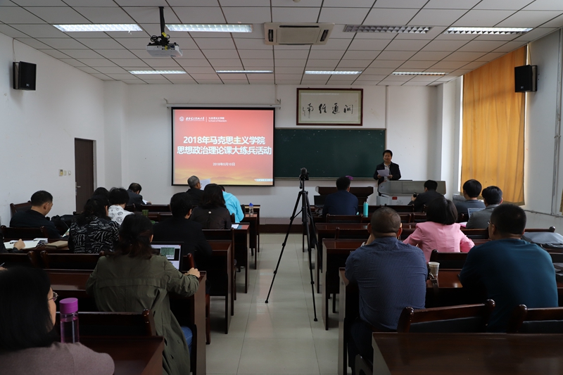 (通讯员:李洁)为深入学习贯彻习近平新时代中国特色社会主义思想和党的十九大精神,落实全国、全省高校思想政治工作会议精神,扎实推进思政课教学改革工作,按照陕西省高教工委以及学校的安排部署,2018年5月10日,yl6809永利在信远楼二区106报告厅举行思想政治课大练兵活动,学院全体教职工参加了此次活动。本次活动邀请专家戎毓春、贾必章,以及学院任芳、宋义霞、陈鹏联等教学经验丰富的资深教师担任评委,来自我院原理、概论、纲要、基础等四个个教研室的17位老师进行了现场展示。会议由院长李刚主持。