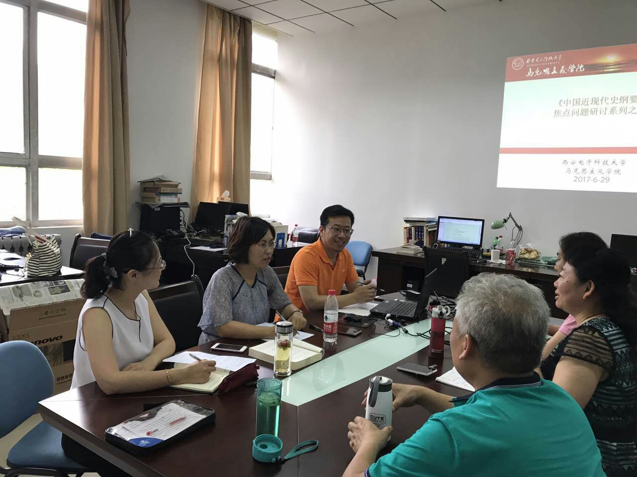 ( 通讯员:刘晓红)2017年6月29日下午,《纲要》教研室举行了第二次“中国近现代史纲要”焦点问题研讨暨备课会。会议由纲要教研室主任刘晓红主持,纲要课的各位同仁以及特别邀请的人文学院历史系朱文慧老师参加了会议。会议在轻松的话题中拉开序幕。