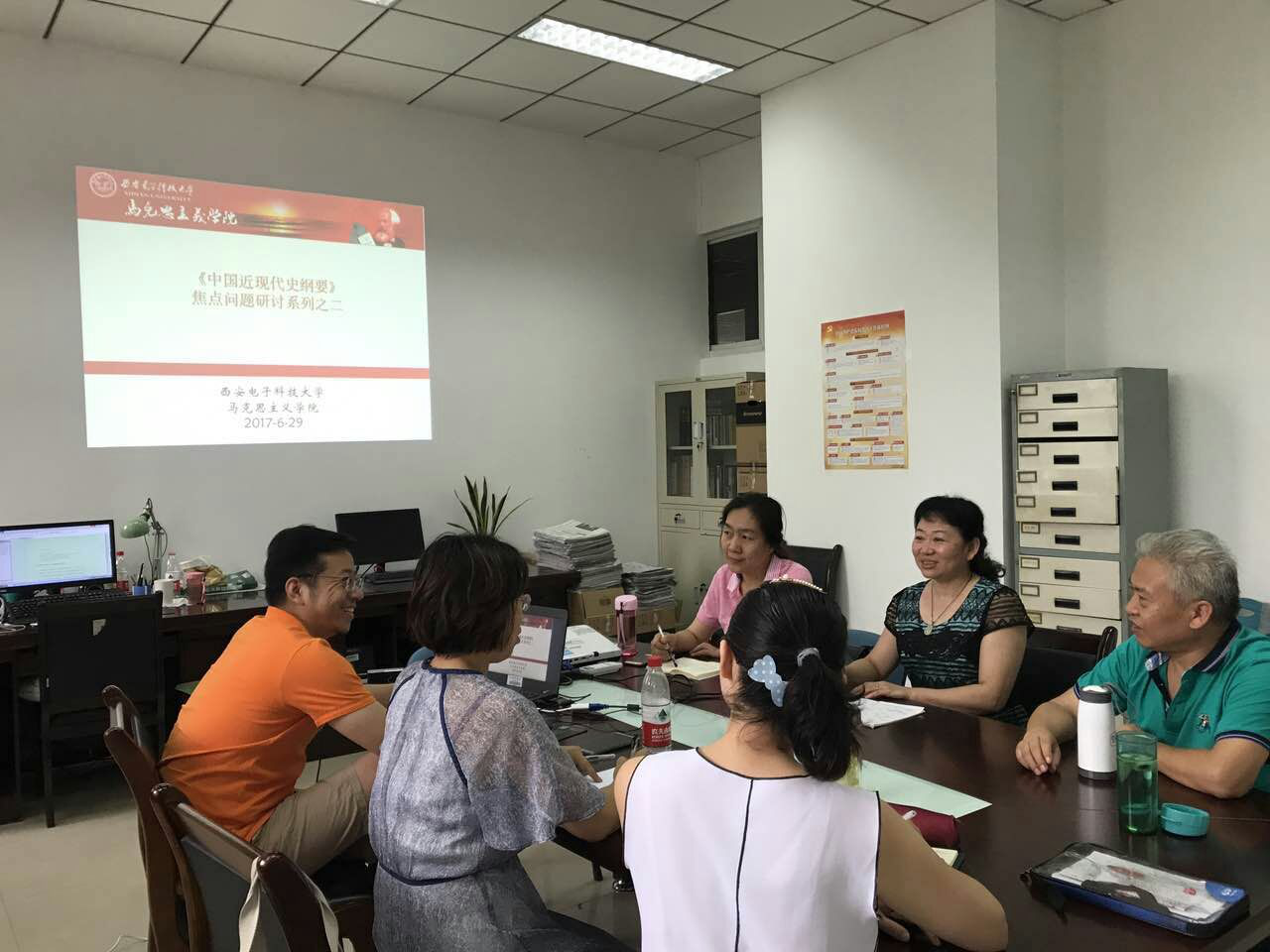 大家针对《中国近现代史纲要》专题教学中的重点、难点、焦点问题以及以学生为主体的多维教学方式展开了积极热烈的讨论,并对17年秋季的教学设计进行了整体规划。在研讨中,老师们着重结合教学过程中遇到的问题和90后大学生的思想实际,对亟需解决的焦点问题继续进行梳理,探究在教学中如何让知识体系走入学生的心里,转化为学生真正的思想动力,形成正确的历史观和价值观,发挥出纲要课在培养学生思想素质中的作用 。