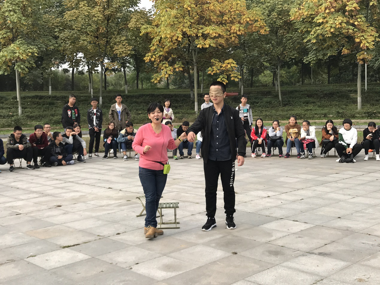 培训的第二项,由魏萍教授带领学生进行“信任盲行”体验活动。