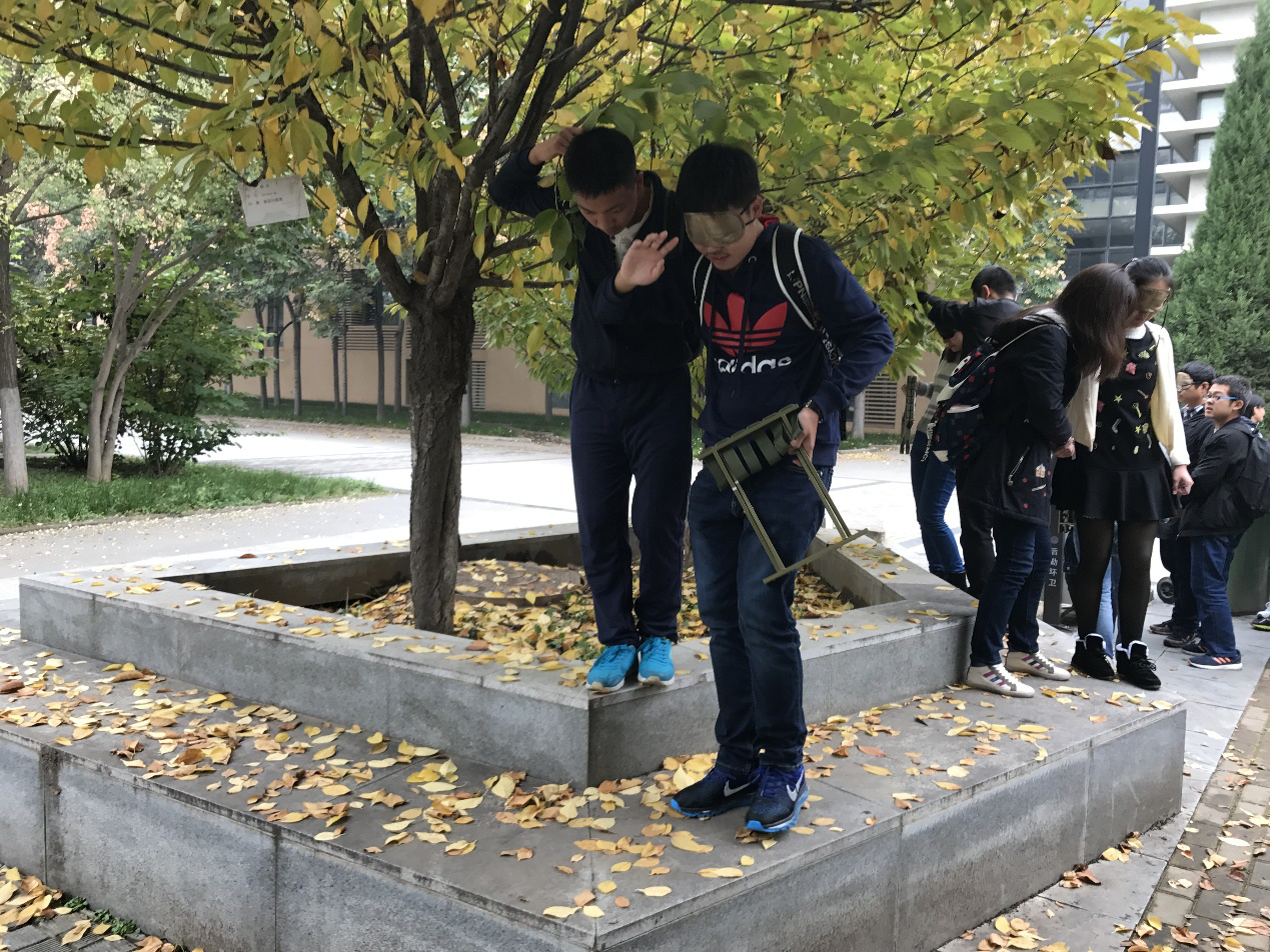活动中要求学生们通过“天使”与“盲人”的角色扮演,体验了“盲人”在看不到路时无助的心情;了解了“盲人”在需要“天使”帮忙时要如何与“天使”建立相互信任的关系;以及在禁语的环境下,“天使”如何才能向“盲人”提供有效的帮助,等。