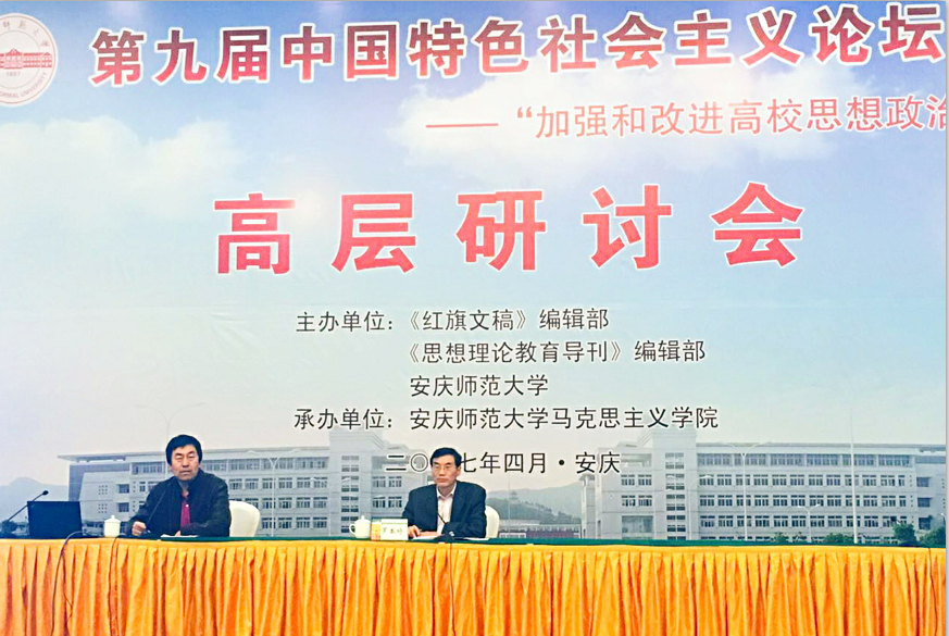 4月15-16日,由《红旗文稿》编辑部、《思想理论教育导刊》编辑部和安庆师范大学联合主办的第九届中国特色社会主义论坛——加强和改进高校思想政治工作高层研讨会在安庆师范大学召开。我院夏永林教授、刘建伟副教授应邀参加了此次会议。