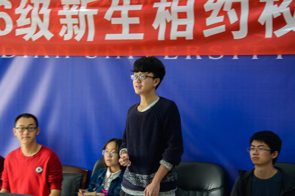 会上,各与会新生代表畅所欲言,结合个人实际情况,就学校 建设发展、个人成长规划、科研能力提升及创新能力培养等方面,同郑晓静分享了自己入学后的感悟与学习中所遇到的困惑,同时对自身学习生活中遇到的问题对学 校提出了意见和建议。与此同时,也将自发制作的“我们的晓静姐”影像资料作品送给郑晓静,并一起现场观看了短片中收录的郑晓静自2013年至今参加部分学 生活动的美好瞬间。