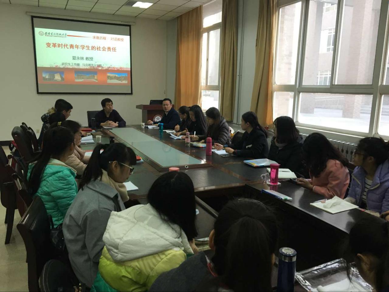 (通讯员 戚伟)12月6日下午4点,由研究生工作部主办、yl6809永利承办的“对话教授”活动在信远楼II-135成功举办。应研究生工作部邀请,yl6809永利副院长夏永林教授做了题为“变革时期青年学生的社会责任”主题报告,此次活动旨在提供师生交流的平台,促进不同学院不同学科沟通,给与研究生学术和生活的指导,活动取得了良好效果。
