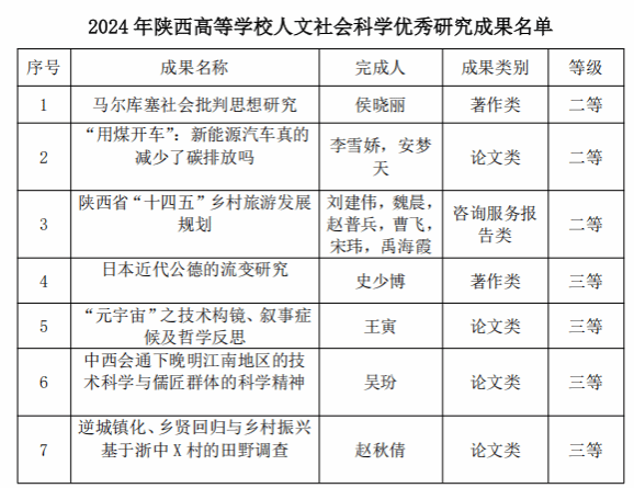 近日,陕西省教育厅公布了2024 年度陕西高等学校人文社会科学研究优秀成果名单,yl6809永利共有7项成果获奖。其中,二等奖3项、三等奖4项。