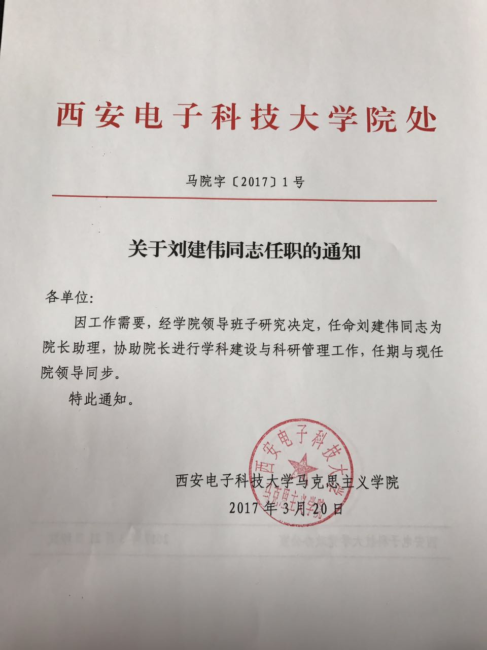 关于刘建伟同志任职的通知
