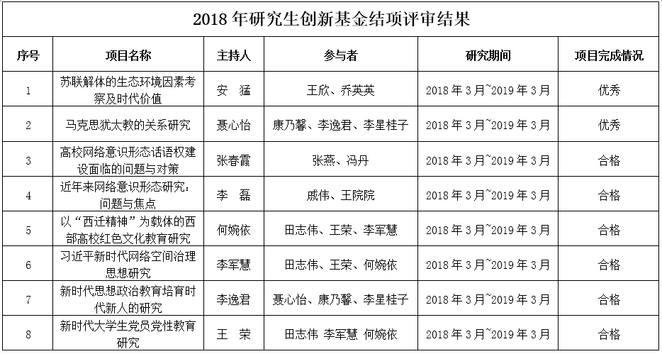 2018年研究生创新基金结项评审结果