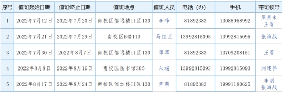严格落实值班值守制度,值班人员须严格遵守值班制度,做好值班记录,保持通讯畅通,及时处理假期中相关事务,如遇突发情况按照学校预案第一时间上报并做好应急处置工作。