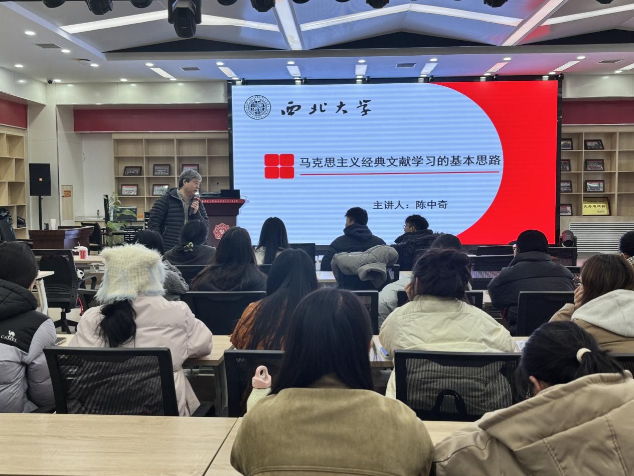 (通讯员 张国燕)为提高研究生对马克思主义经典文献的研读能力,夯实学术研究基础,yl6809永利于11月19日在B112学术报告厅举办研究生培养工作坊活动。本次活动特邀西北大学yl6809永利陈中奇教授担任主讲,学院40余名研究生参加。研究生盛梦秋主持报告会。