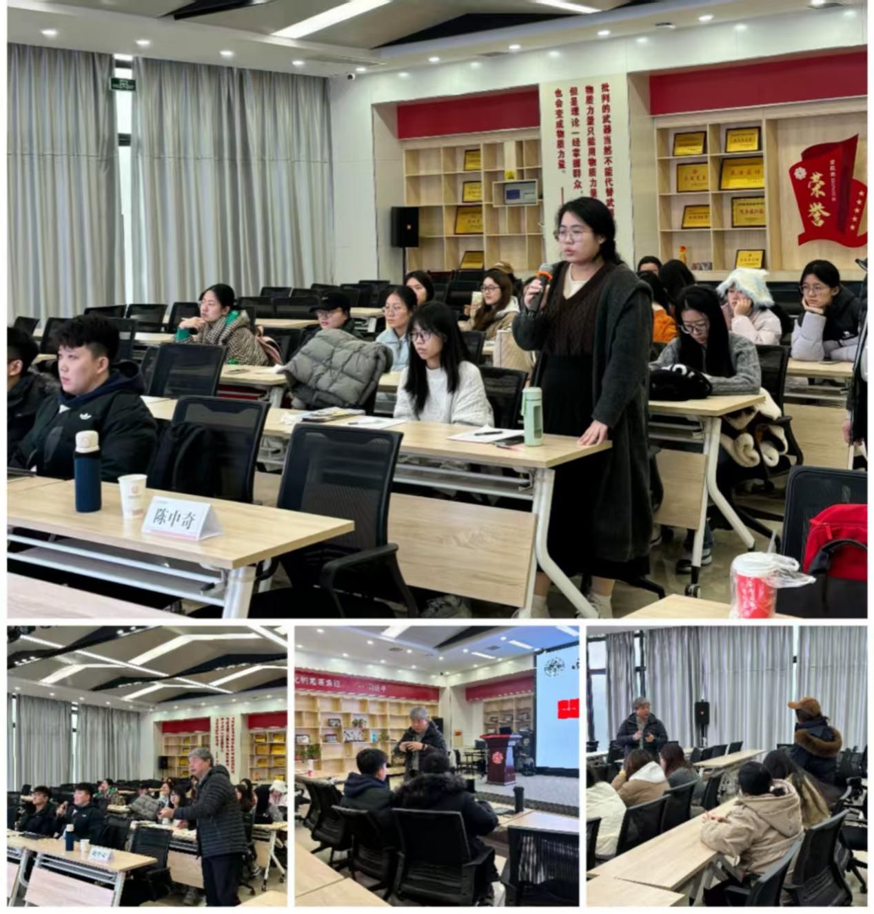 在互动提问环节,同学们踊跃发言,围绕经典文献研读难点、学术研究方向等问题展开讨论,陈中奇耐心细致地逐一解答,现场交流氛围热烈浓厚。