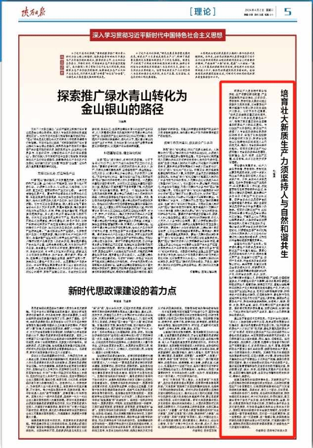 【学术动态】【陕西日报】刘建伟:培育壮大新质生产力须坚持人与自然和谐共生