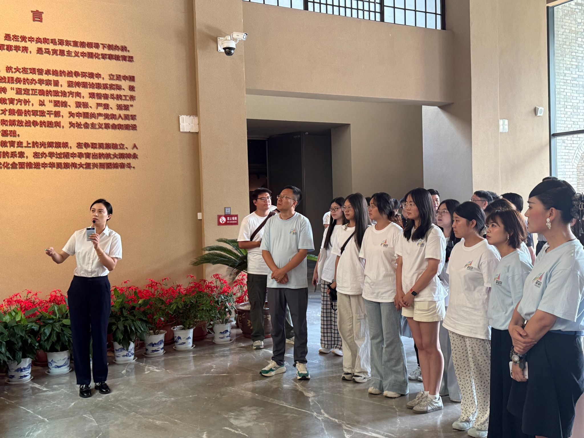 随后,实践队来到本次活动的最后一站——中国人民抗日军政大学纪念馆。“抗大”是中国共产党在抗日战争时期创办的军政干部培养机构,被誉为“革命熔炉”和“将星摇篮”。馆内通过珍贵文物、历史场景复原及现代化展示手段,再现老一辈无产阶级革命家及抗大学员在烽火岁月中生活、学习、战斗的峥嵘历程 。“认字就在背包上,写字就在大地上,课堂就在大路上,桌子就在膝盖上”,队员们认真聆听讲解,仔细观看展品,深刻体悟“团结、紧张、严肃、活泼”的抗大校训所蕴含的精神内核,感受其中艰苦奋斗、献身革命的磅礴力量,进一步坚定了在新时代勇毅前行的理想信念。