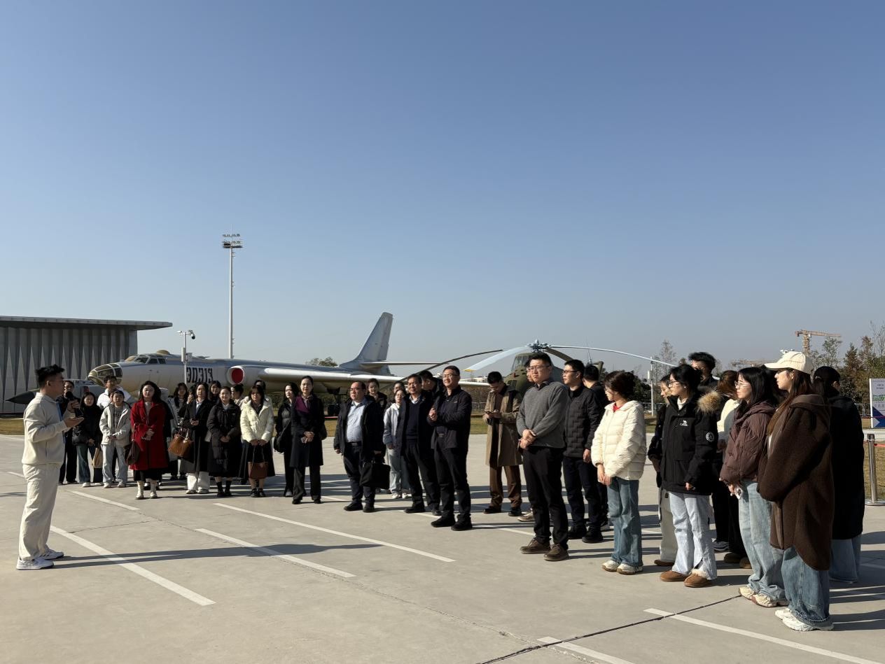 首先,在讲解员的引导下,实地参观了西北工业大学军工素质教育实践中心。在室外展场上,同学们近距离观摩了运-20、歼轰-7、东风二号导弹等装备,这些装备浓缩了中国航空、航天、航海事业从无到有、由弱变强的壮阔历程。随后,同学们又走进室内主题展馆,展馆通过“图文叙事+实物印证”的展陈方式,系统梳理了中国航空从古代飞天梦想到现代工业体系的发展历程。同学们直观感受到了祖国国防科技事业的艰辛探索与辉煌成就,领悟到科学家精神与航天精神的时代内涵,进一步增强了爱国主义情感。