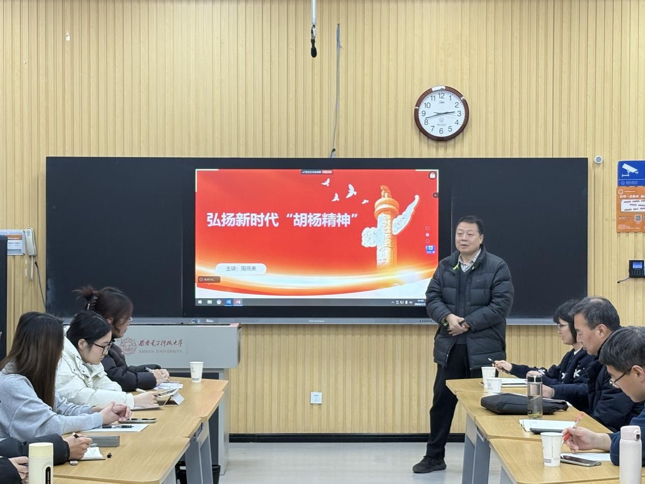 随后,周燕来书记结合“胡杨精神的西电案例”,分享了学校师生在学科建设、志愿服务中践行坚守与奉献的故事,让抽象的胡杨精神变得可感可学、具象生动。在授课过程中,他对研究生提出了三点希望:一是以胡杨“扎根”为喻,如春种般俯身深耕,扎实学好专业知识与党的理论,筑牢成长根基;二是以“坚韧”为标尺,面对困难主动迎难而上,主动加强与其他专业的交叉融合、相互赋能,在实践中锤炼本领;三是以“奉献”为导向,积极参与校园服务与社会志愿活动,在传承西电精神的过程中,收获秋收的成长与进步。