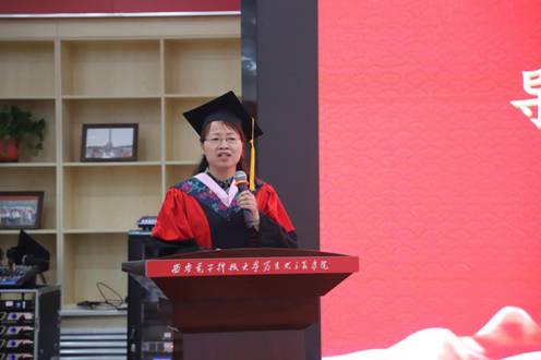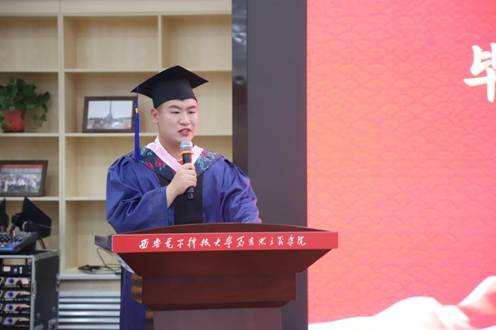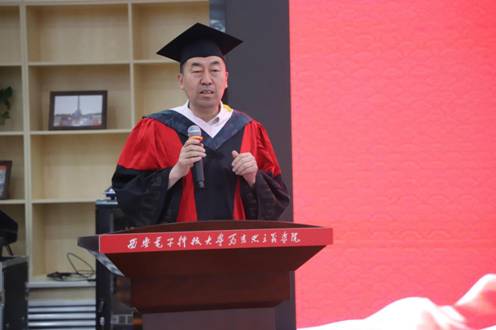 李刚院长代表学院致辞。他提到,三年前同学们满怀期待地来到西电,三年后圆满地完成了在西电的修行。学习永无止境,希望各位学子在下一站走得更好,能够成为有理想、有本领、有担当的时代新人。他勉励各位同学走知识分子正确的成长道路,多读、多听、多干,努力书写人生灿烂华章。