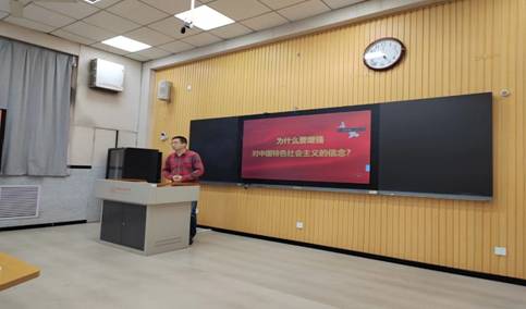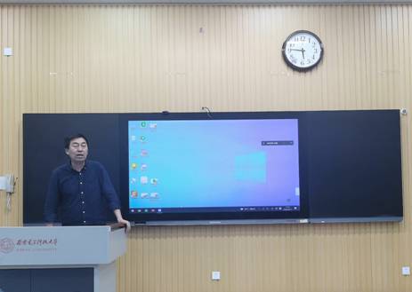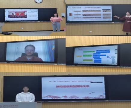 张阔海老师结合思政课“大练兵”内容展示,为同学们进行了思政课教学示范和说课展示,对课程选题内容、整体设计、讲课节奏等备课过程、讲授流程方面进行了具体指导。同时,他对同学们试讲PPT设计提出建议,强调在教学ppt设计、制作方面要力求逻辑清晰、言简意赅、美观大方,善用图表、小视频等表现形式。