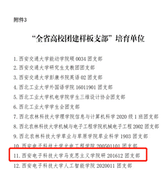 (通讯员梁佩章萌)近日,共青团陕西省委和陕西省教育工委联合印发了《关于确认全省学校团建示范单位培育资格的通知》,我院研201612团支部入选“全省高校团建样板支部”培育单位。
