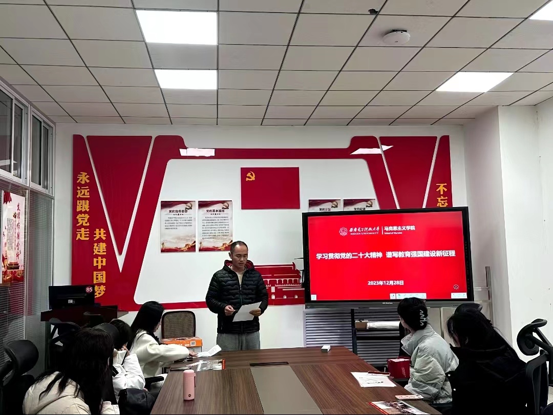 (通讯员 申梦莎)为深入学习贯彻习近平新时代中国特色社会主义思想和党的二十大精神,进一步提高研究生理论宣讲水平。2023年12月28日,yl6809永利联合体育部在信远Ⅱ区220会议室开展“时代之声”研究生宣讲团12月份宣讲活动,活动主题为“学习贯彻党的二十大精神 谱写教育强国建设新征程”。本次宣讲活动宣讲人为yl6809永利“青”声“习”语宣讲团成员苟胜男同学和任静怡同学以及体育部宣讲团成员胡重庆同学。