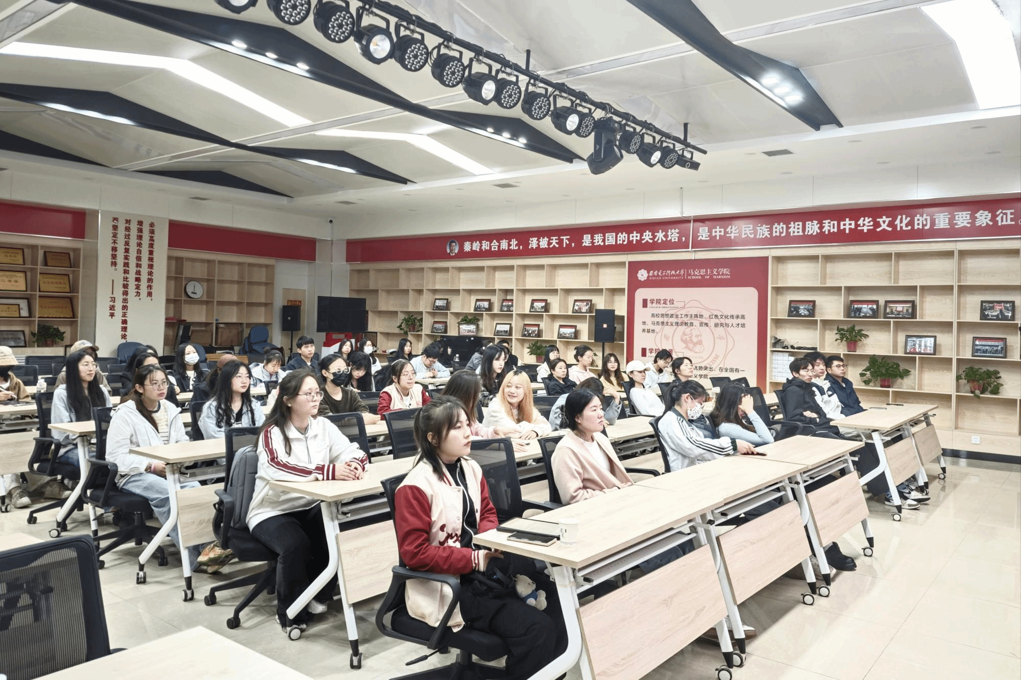 随后,大家集体观看了“五四运动”相关纪录片,回顾了“五四运动”的背景和意义,并就“为全面建成社会主义现代化强国,如何奉献自我的青春力量?”这一问题,交流讨论。