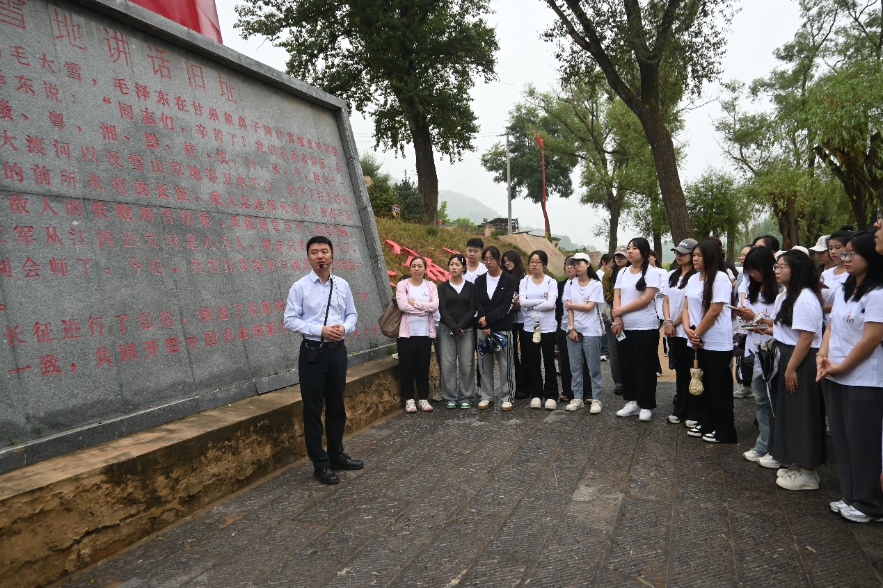 7月15日上午,由西安报业传媒集团(西安日报社)联合yl6809永利yl6809永利主办的“新时代青年延安行”暑期社会实践活动进入第3天行程,团队成员来到延安市甘泉县毛泽东“雪地讲话”旧址,聆听传遍世界的“长征是宣言书”。