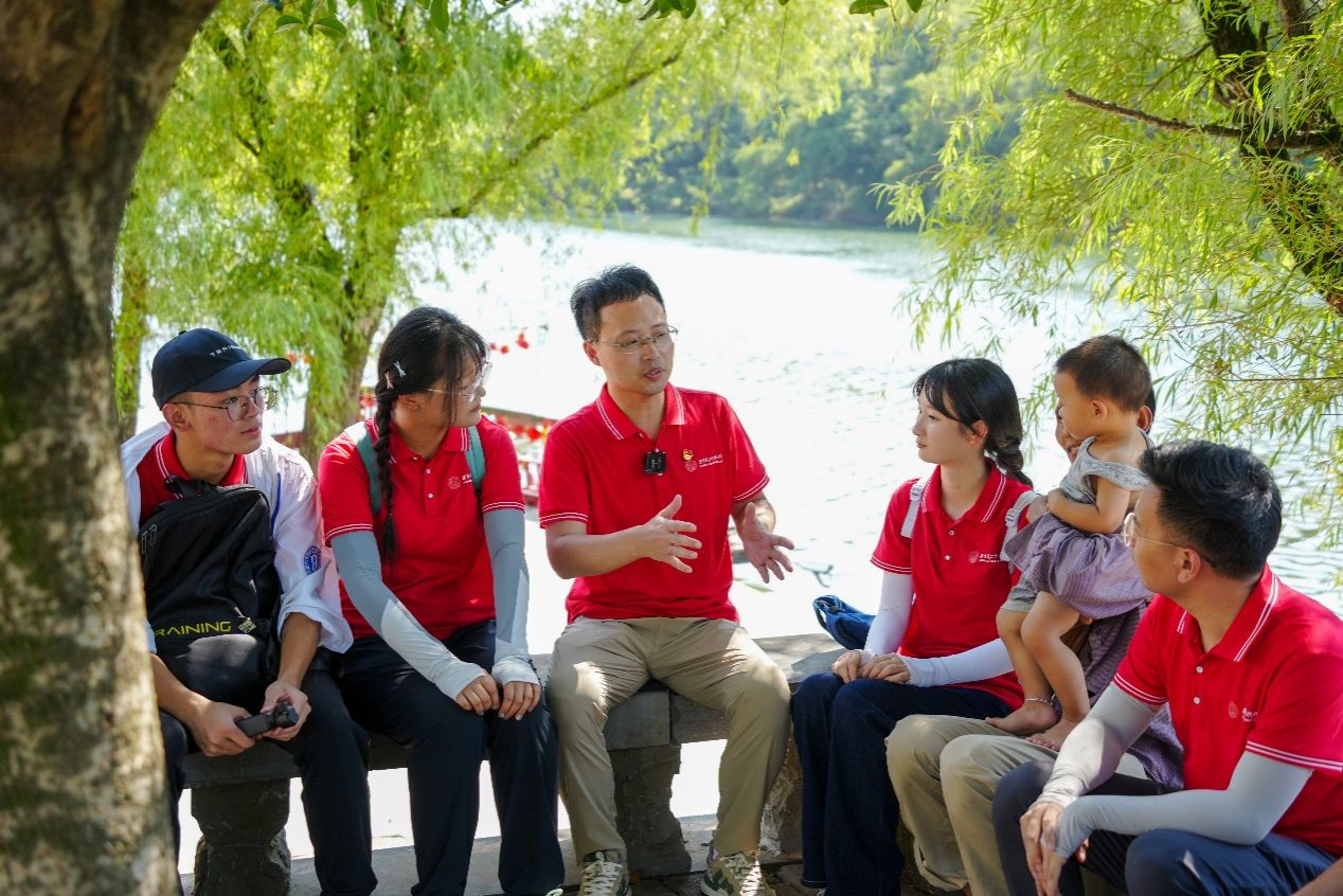 7月25日,团队成员行至湘江之畔,申老师带领学生们和当地老乡回顾了湘江战役的悲壮历史,并结合《学无止境:四个时代的跨越》这一主题,讲述了通校师生湘江之畔巧用学习工具学习理论知识、练习收发报技术的感人事迹。楼佳妮同学与团队成员一起进行了情景剧演绎,展示了西电前辈们的聪明才智。