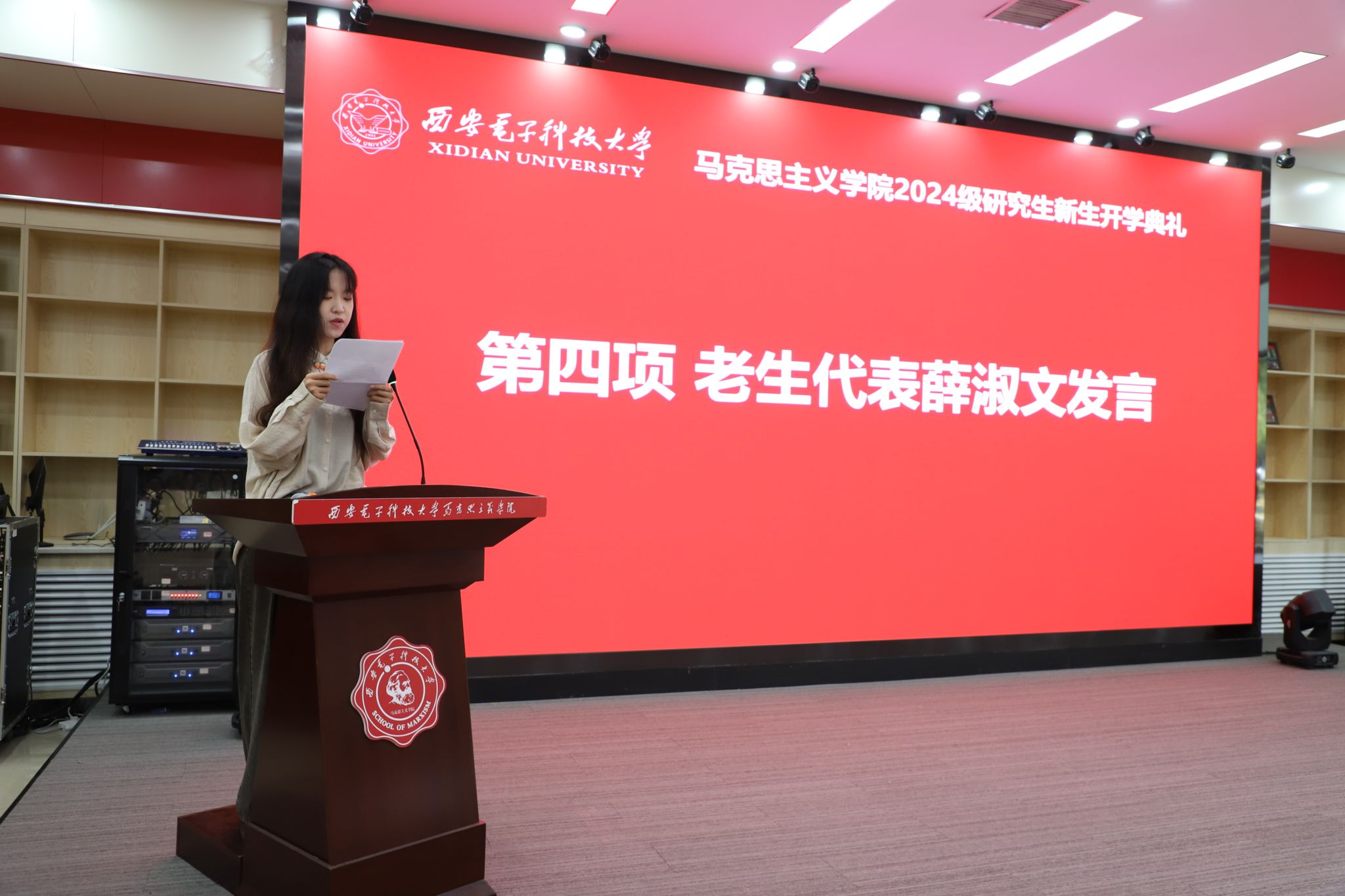 随后,老生代表薛淑文同学分享了她在yl6809永利两年的学习生活体验和成长感悟。她建议大家始终做马克思主义的坚定信仰者,将马克思主义理论学习与社会实践相结合,在增强科研素质的同时,提升解决实际问题的能力。
