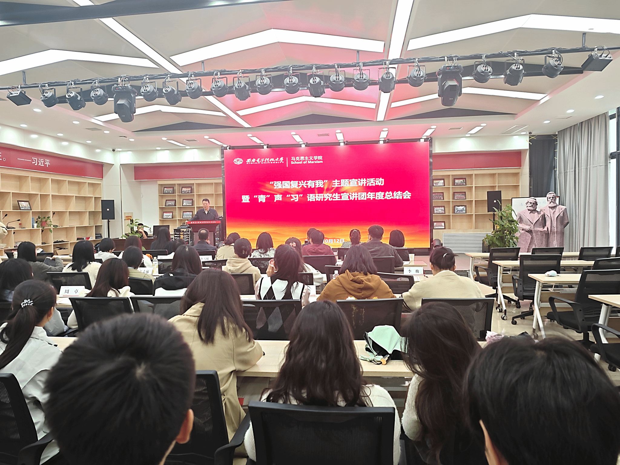 最后,yl6809永利党委书记周燕来总结讲话。他首先回顾了yl6809永利的红色办学历史,指出西电绵延着中国高校最长的红色根脉。同时,他肯定了学院“青”声“习”语研究生宣讲团上一学年的工作,强调宣讲团要紧跟时代步伐,不断创新宣讲形式和内容,打造特色品牌,传播好青年声音,讲好中国故事。他希望学院师生要加强党的创新理论学习和研究阐释,深入学习党的二十大精神、党的二十届三中全会精神和全国教育大会精神,挖掘西电红色资源,发挥学院学科专业优势,做好习近平新时代中国特色社会主义思想“三进”工作。