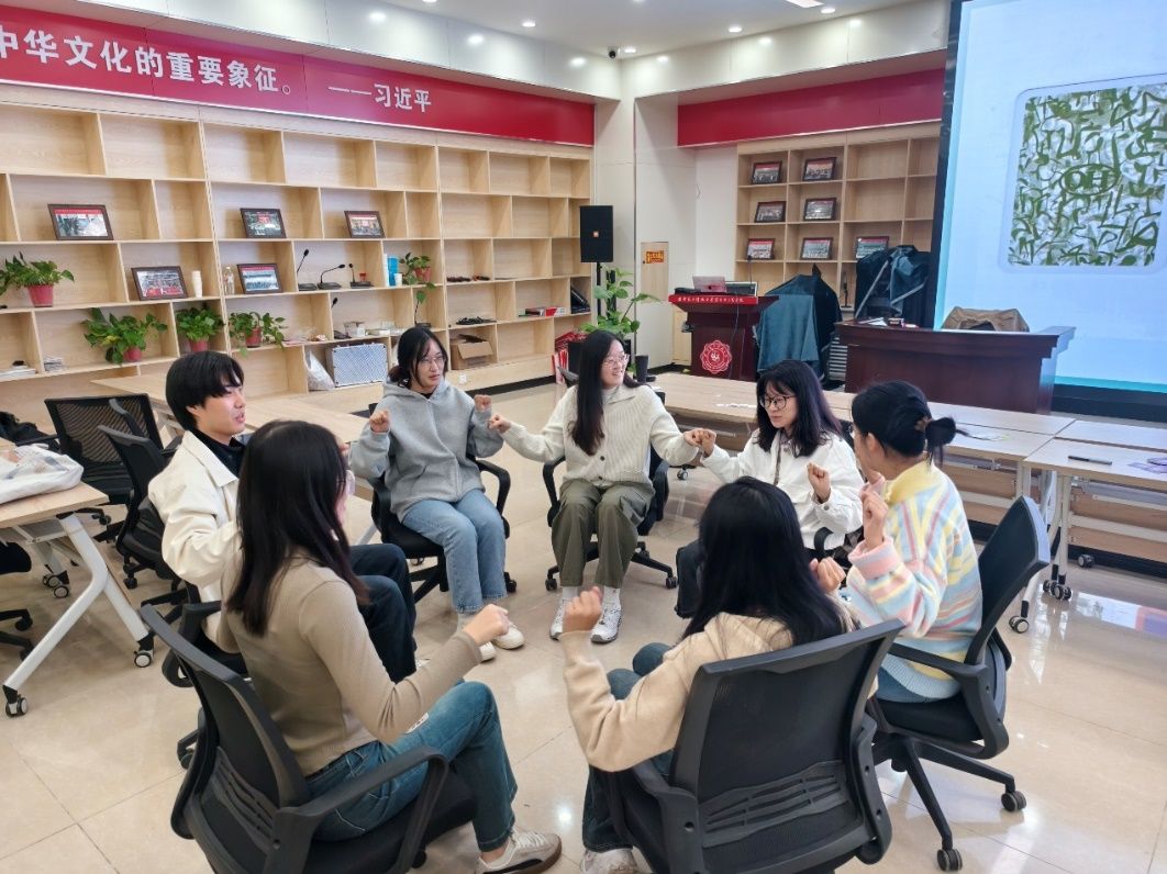 随后韩浏老师将同学们分为六组,并指导大家围坐在一起用各自选择的象征性动物介绍自己。简单沟通过后,老师又引导大家进行了“切土豆”等互动小游戏,大家交流不断、欢笑不绝,从互不相识到敞开心扉,从一言不发到无话不谈,游戏中同学们不仅放松了身心,更拉近了距离,增进了默契。