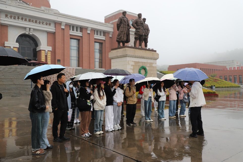 上午10时,马院师生们到达陕甘边革命根据地纪念馆。秋雨连绵,在纪念馆前,纲要教研室思政课教师孙泽海从四个革命故事出发,讲述革命先辈在照金建立革命根据地及其不断发展的重要原因。他强调,革命先辈的伟大精神应被我们永远铭记和传承。同时,他也希望同学们能够通过学习历史,加强独立思考的能力,对革命史怀有敬畏之心。