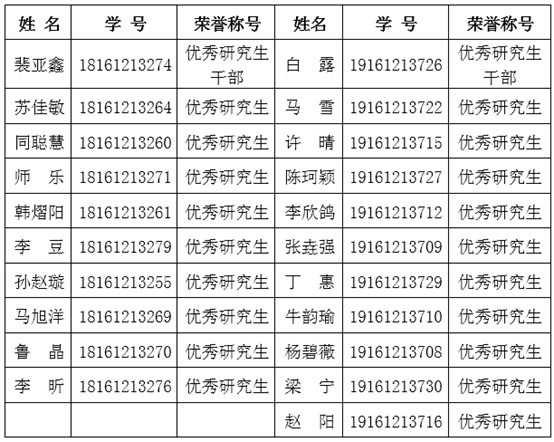 根据《关于做好2019~2020学年研究生评优工作的通知》(研字〔2020〕57号)要求以及《yl6809永利研究生学年总评工作实施办法》规定,现将学院2019~2020学年研究生评优结果公示如下: