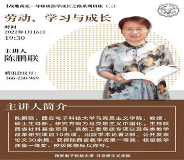 (通讯员 汤春梅)2022年1月16日晚,“战地黄花——导师谈治学成长之路”系列讲座第三期在云端成功举办。本次讲座邀请研究生导师陈鹏联教授做题为“劳动、学习与成长”的专题报告。研究生从洺畅主持了报告会,学院部分老师和研究生参加了此次报告会。