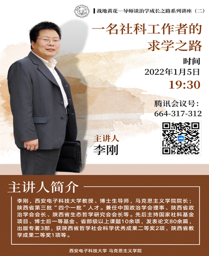 (通讯员 张瑾 林清香)2022年1月5日晚,“战地黄花——导师谈治学成长之路”系列讲座第二期在云端成功举办。本次讲座邀请学院院长李刚教授做题为《一名社科工作者的求学之路》的专题报告。研究生从洺畅主持和总结了报告会,学院部分研究生参加了报告会。