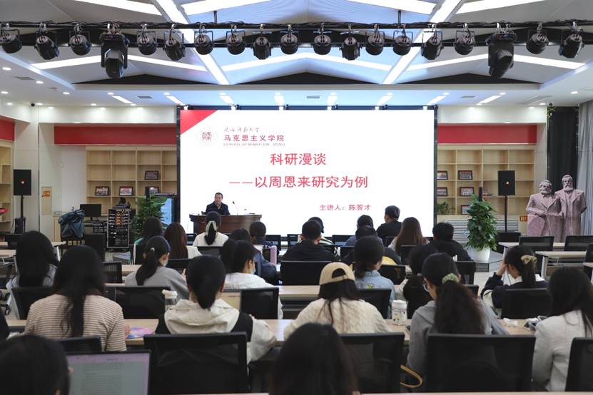 (通讯员 丁睿 郭丽娟 尹含玉)为贯彻落实全国研究生教育会议精神,深化人才培养综合性改革,全面提升研究生培养质量,2023年4月14日下午,yl6809永利在南校区B112教室举办研究生培养质量提升计划系列活动第一讲,陕西师范大学yl6809永利陈答才教授以“科研漫谈——以周恩来研究为例”为主题向大家做学术报告。活动由刘建伟副院长主持,马院2021、2022级全体学生参加了此次活动。