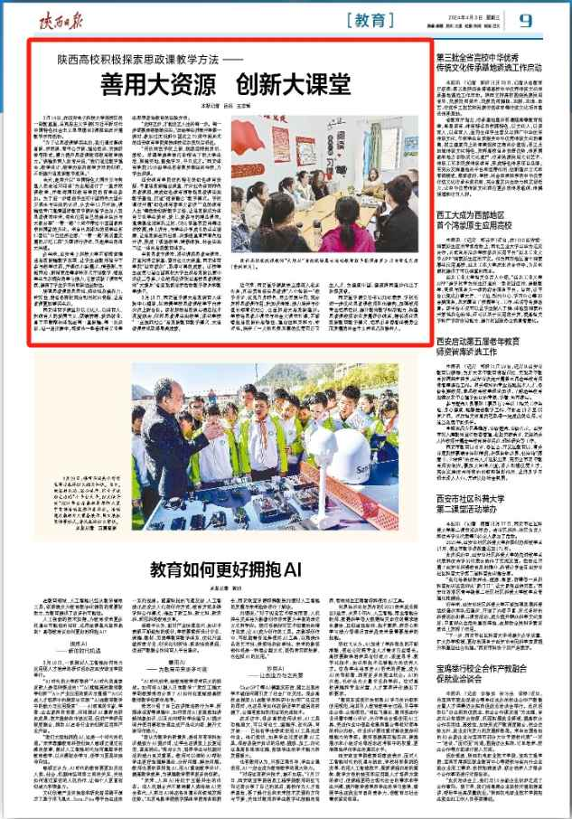 西安医学院党委书记刘岭表示,学校要进一步优化思政课教师队伍结构,加强教师专业培养培训,提升教师教学科研能力,构建思政课教师职业发展评价体系,持续深化思政课教育教学模式,培养更多德智体美劳全面发展的社会主义建设者和接班人。