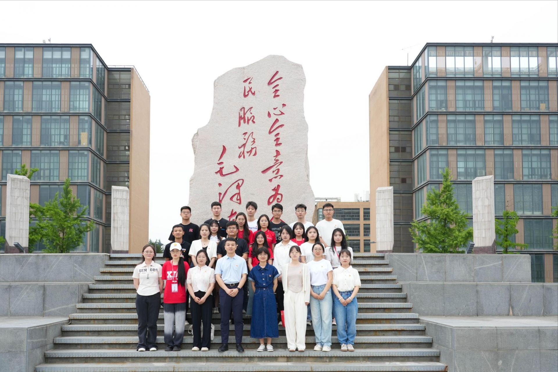 西电马院“青”声“习”语研究生宣讲团成员马聪聪带领同学们驻足于毛主席题词“全心全意为人民服务”前,讲述毛泽东与西电的故事,共同感受老一辈革命家的崇高精神。看展览、听故事,伴随着马聪聪娓娓道来的毛泽东与西电不解之缘的一幕幕,题词的精神内涵进入同学们的眼中耳中,最终浸润在同学们的心中。同学们纷纷表示,要深刻体会并大力弘扬题词精神,将红色基因内化于心,外化于行,继承老一辈革命家光荣传统,做有理想、有本领、有担当的新时代青年。
