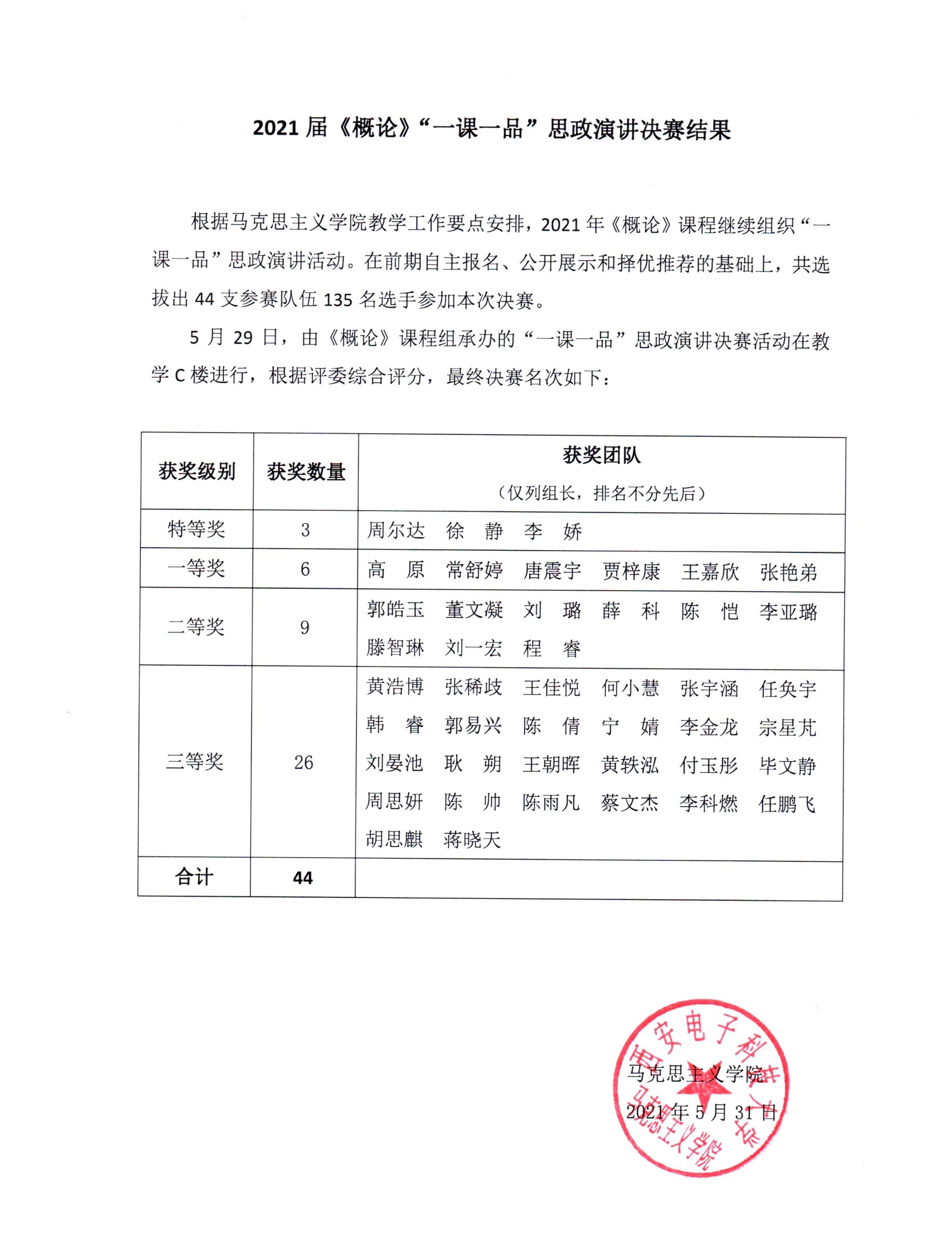 yl6809永利2021届《概论》“一课一品”思政演讲决赛结果公示