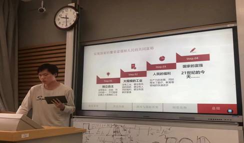 本届竞赛活动历时5个月,共分为三个阶段,分别为选题和组队、小班展示和年级决赛。从去年底开始的新学期,“纲要”教研室全体教师就围绕着选题、展示的形式、评价的标准以及学生的组织进行了深入研讨和准备。新学期正式开学以来,“纲要”课程各任课教师积极在所带班级组织学生组队和选题,指导学生结合选题进行材料的收集和文献的整理,帮助学生拟定分析研究的框架,要求学生规划研究的时间表和路线图,研究中积极为学生答疑解惑。经过近1个半月的班内展示,各教学班共推出50组同学参加年级多维教学展示决赛。