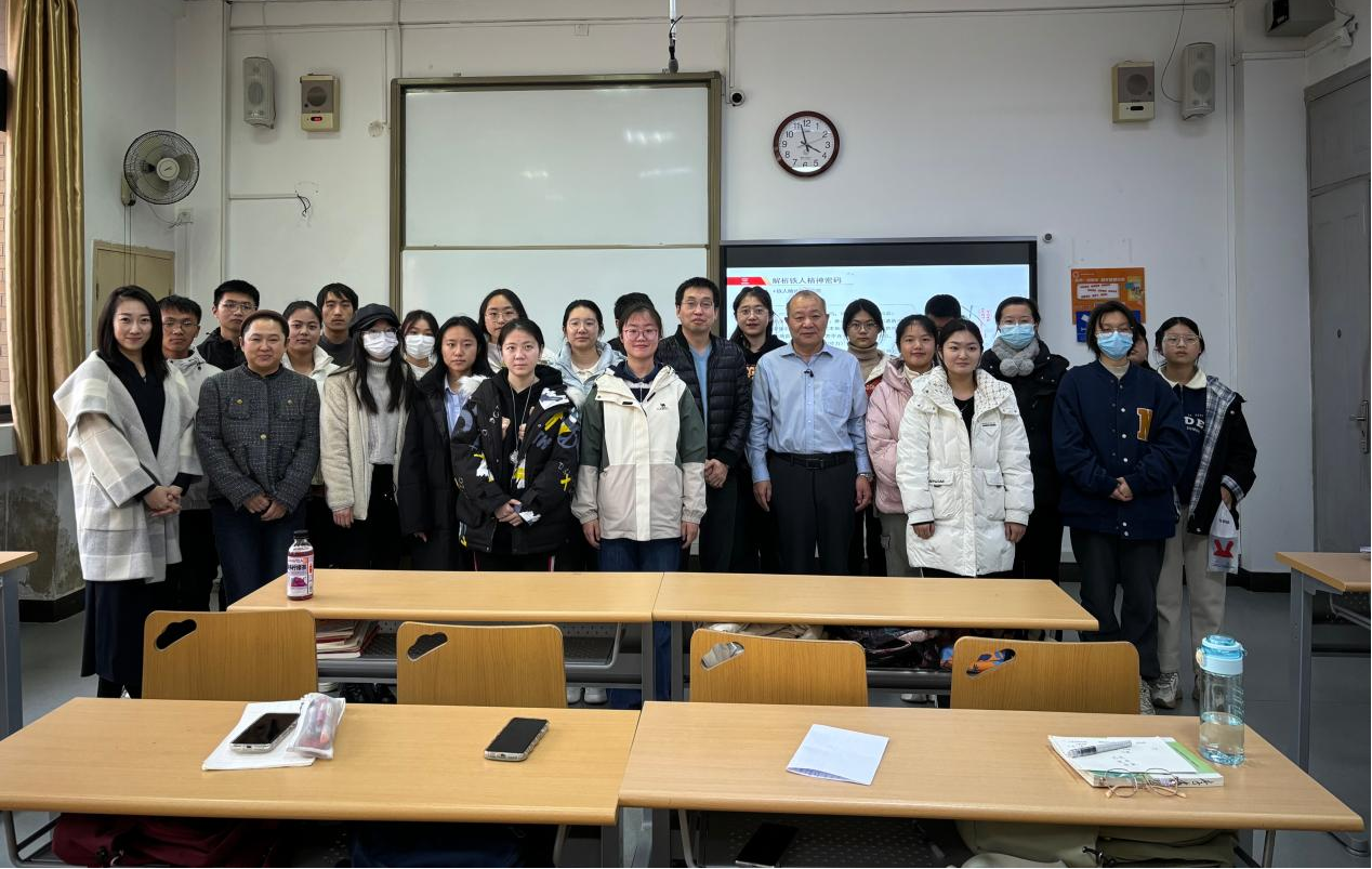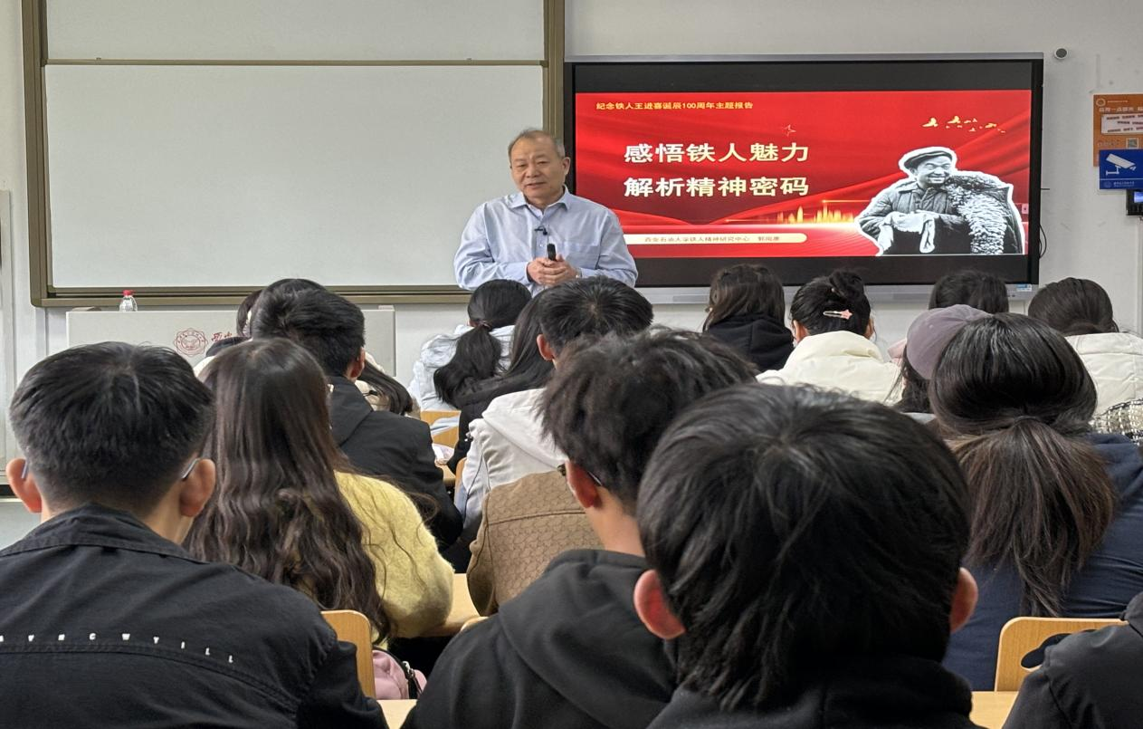 (通讯员:孙纪瑶)2023年10月8日是铁人王进喜同志诞辰100周年纪念日。11月28日下午,yl6809永利德法教研室特邀西安石油大学铁人研究中心首席专家、陕西省科技史学会副理事长、中国石油天然气集团公司政研会特约研究院郭岗彦教授做“感悟铁人魅力解析精神密码”专题报告,以此纪念铁人王进喜同志,激励全体师生进一步弘扬铁人精神,传承红色基因,凝聚奋进力量。德法教研室部分教师以及来自多个学院的五十余名学生参加,本场报告会由张阔海主持。