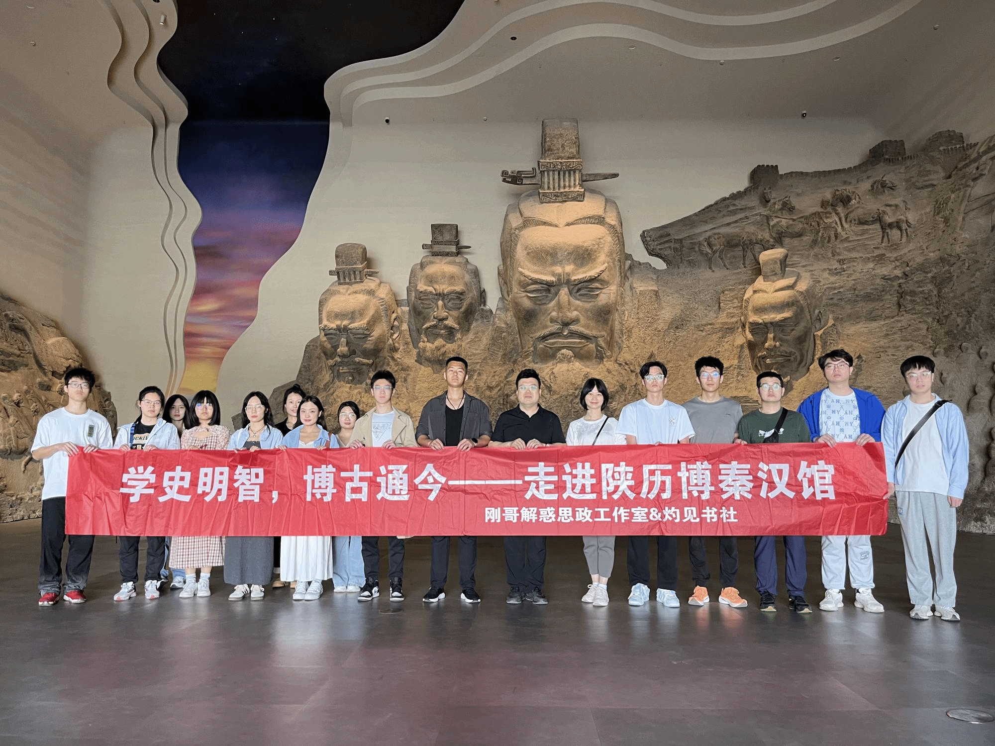 本次研学活动在学生和讲解员的友好交流中走向尾声,同学们纷纷表示受益匪浅。“灼见书社”成员郭梦圆谈到,除了宏大的展馆规模和珍贵的馆藏文物外,陕西历史博物馆秦汉馆还创造性地将先进的多媒体技术与文物展览相结合,给人带来了极具震撼的参观体验。“刚哥解惑”思政工作室成员陈紫藤也表示,通过此次参观学习,我深刻体会到秦汉文明在中华文明发展过程中的奠基作用,对于历史书中的内容有了更为生动的了解,同时也开拓了我们的历史视野,增长了我们的文化自信。