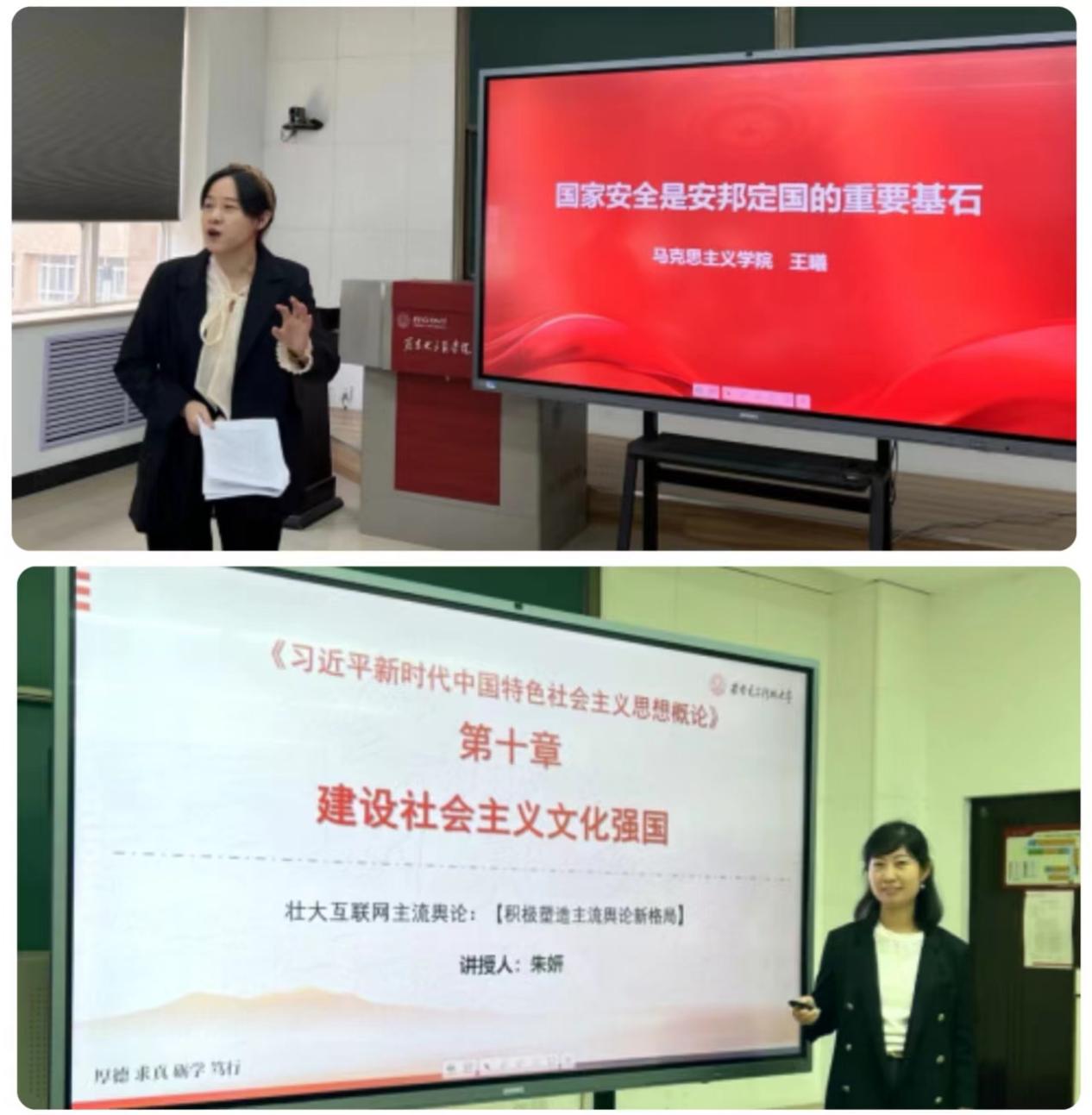 王曦和朱妍两位教师结合自身感悟和理解体会,从学情分析、说课授课、教学反思等方面进行了全方位展示。王曦以“国家安全是安邦定国的重要基石”为主题,以“坚持总体国家安全观”为重点,深刻探讨了新时代维护和塑造国家安全的必要性和重要性。朱妍以“壮大互联网主流舆论”为主题,以互联网为切入点,深入讲解了不断增强意识形态领域领导权和话语权的创新措施和时代方法。