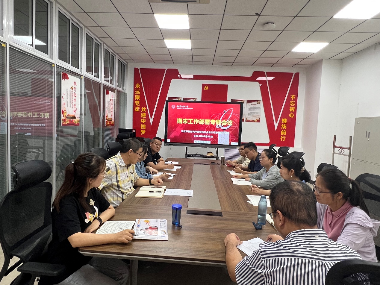 (通讯员 靳雯)为做好期末与暑期工作安排,7月5日上午,习近平新时代中国特色社会主义思想概论教研室在信远楼220会议室召开期末工作部署专题会议,会议由教研室主任赵常兴主持。