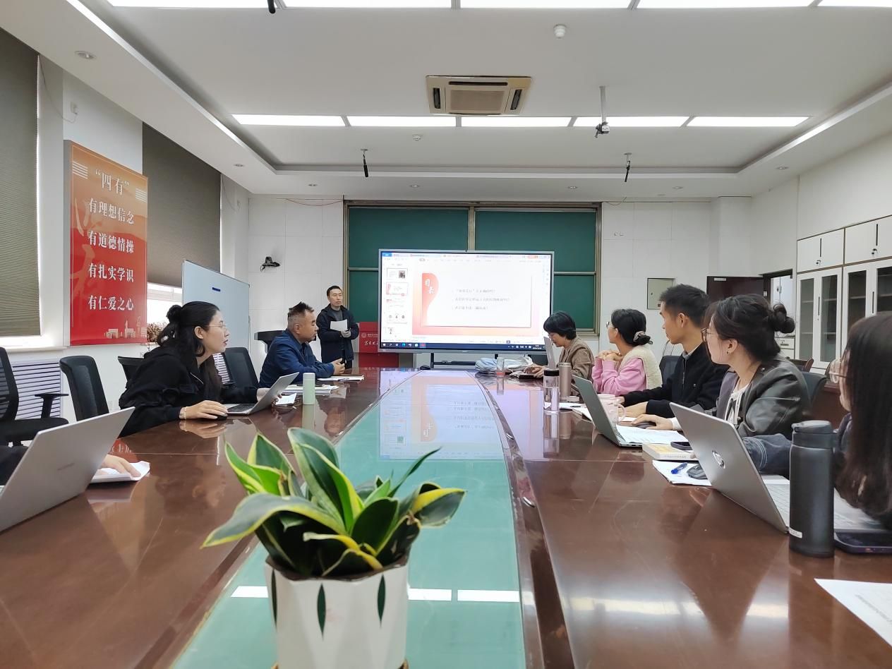 教研室主任田朝晖副教授反馈了前半学期教学总体情况,既肯定了教学工作的成绩,也提出了存在的问题,并对后续教学工作进行相关部署,重点安排了 “品读经典”课内实践活动、随堂测试等工作任务。