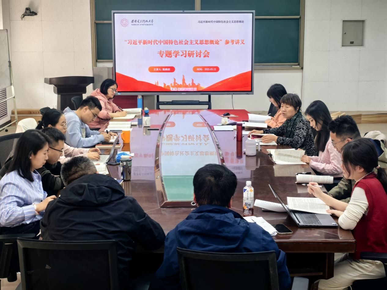 (通讯员 朱妍)为进一步发挥《“习近平新时代中国特色社会主义思想概论”参考讲义》(以下简称《参考讲义》)在加强和改进思政课教学中的示范引领作用,充分讲好新时代伟大变革成功案例,提升思政课程教学质量,3月12日下午,习近平新时代中国特色社会主义思想概论课程组在南校区信远楼Ⅱ-206会议室召开了专题学习研讨会。研讨会由陈鹏联教授主讲,课程负责人赵常兴主持,课程组全体教师参加学习。